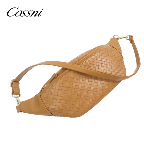 Cossni logo personnalisé sac à bandoulière hommes doux noir taille peau de vache en cuir véritable sac banane tissage conception sacs de taille